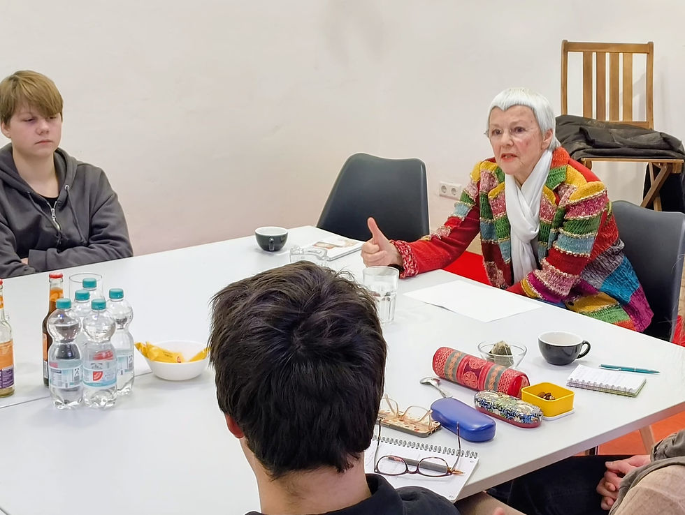 Gabriele Krone-Schmalz im Austausch mit Jugendlichen über die Rolle von Journalismus in der Demokratie
